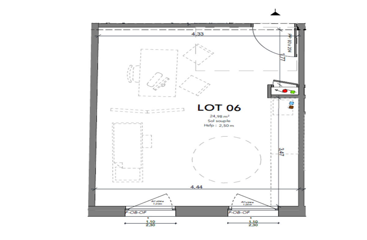 Local professionnel individuel de 24 m² bénéficiant d’une salle d’attente commune réservée aux professions réglementées, de sanitaires communs destinés à la patientèle et de sanitaires communs réservés aux professionnels de santé.