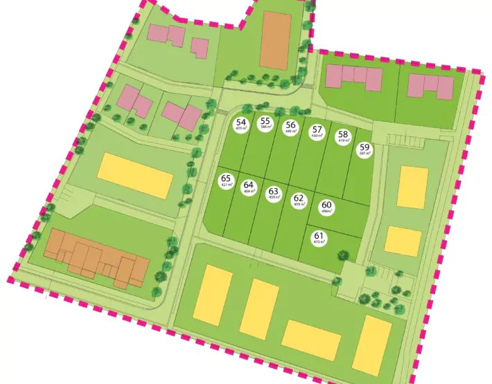 Terrain à bâtir viabilisé de 427 m² au sein du quartier Le Parc à Soliers. Situé en angle avec des règles de construction imposant un jardin Sud sur rue et une construction en limite e propriété.
