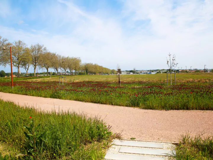 L’allée de platanes sera préservée et une bande paysagère sera créée le long de la RD7. A l’entrée de la ZAC, un espace paysager comprenant un point informations et du mobilier à usage d’agrément sera créé et au sud, des arbres de haut jet seront plantés.
